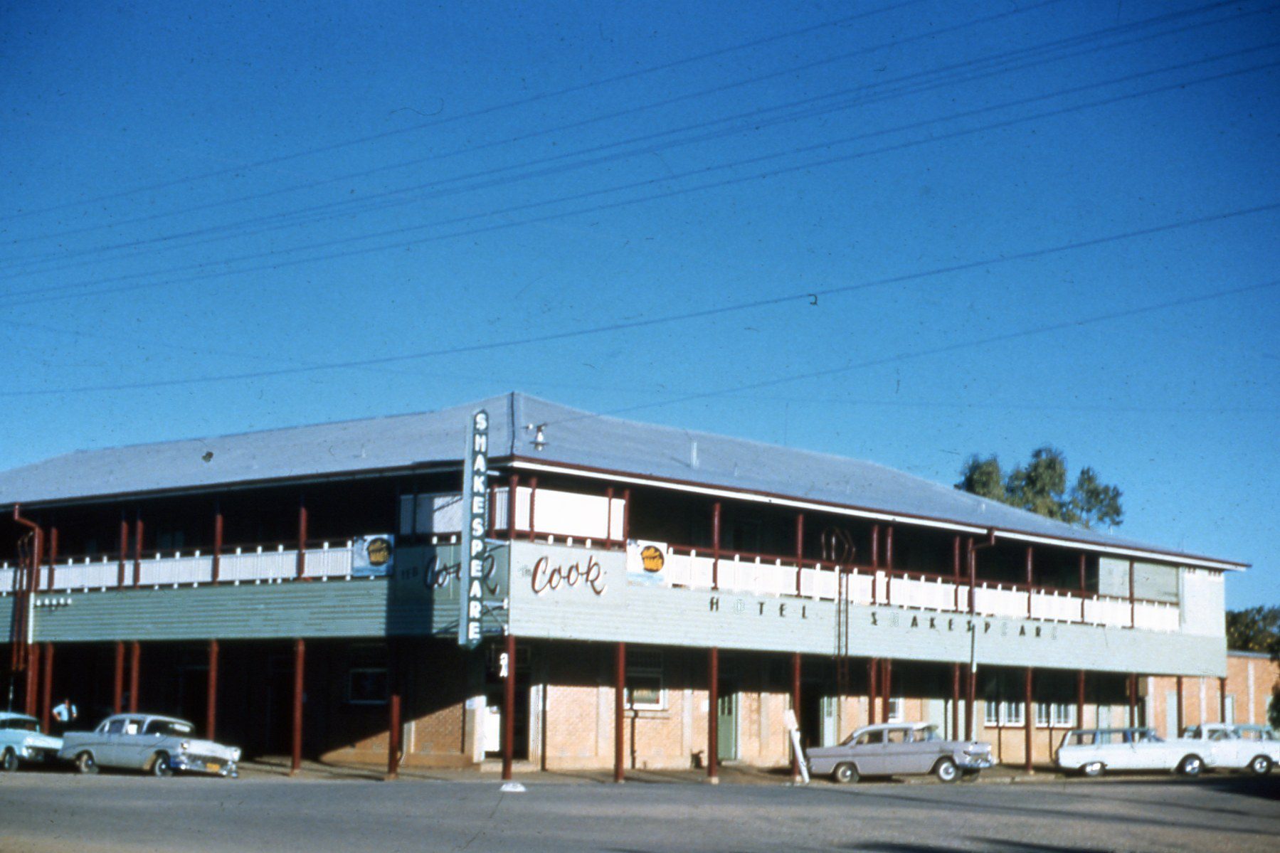 After originally being the Shakspeare Hotel, the hotel’s signage switched periodically between Hotel Shakespeare and Shakespeare Hotel, or took the name of the publican of the day